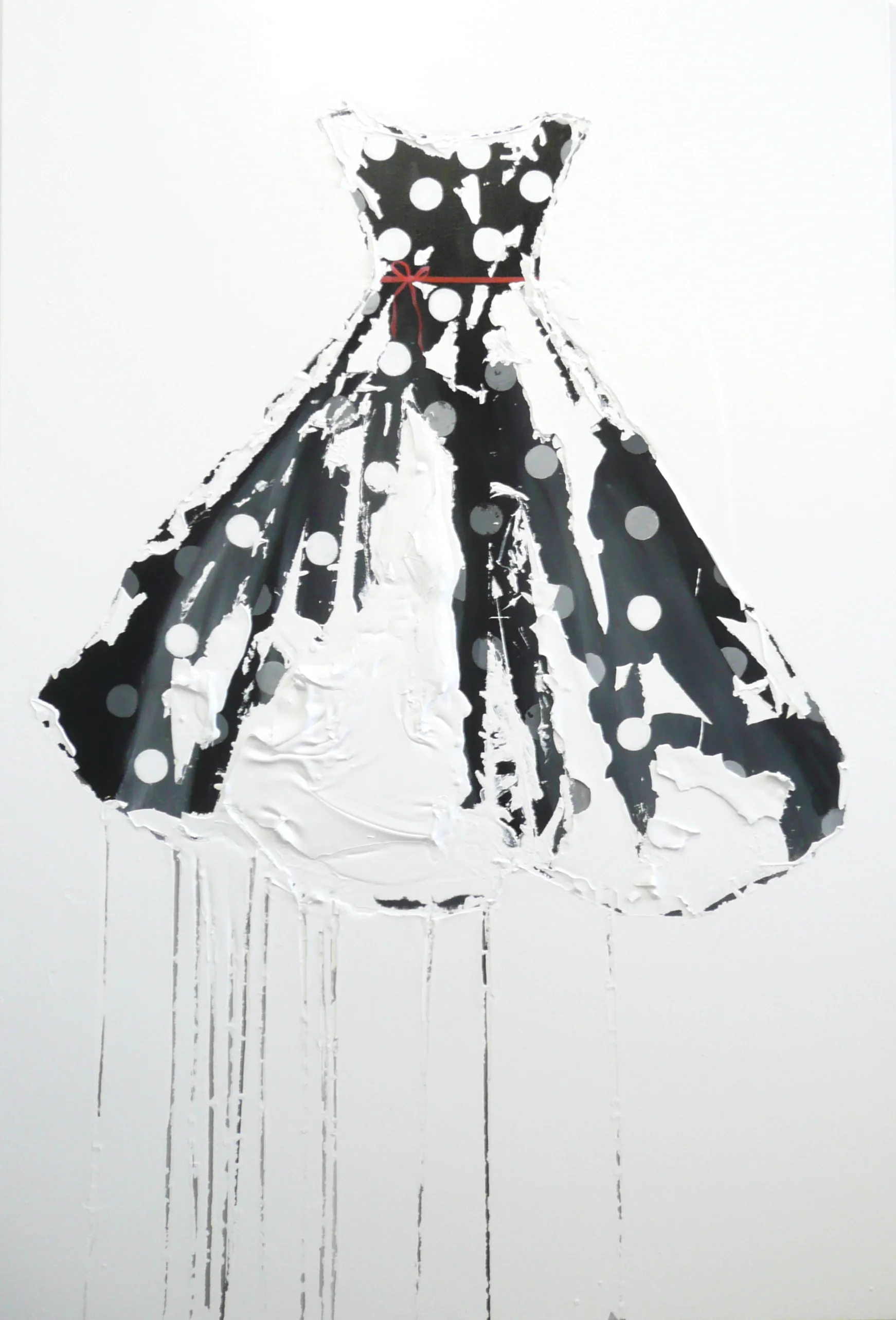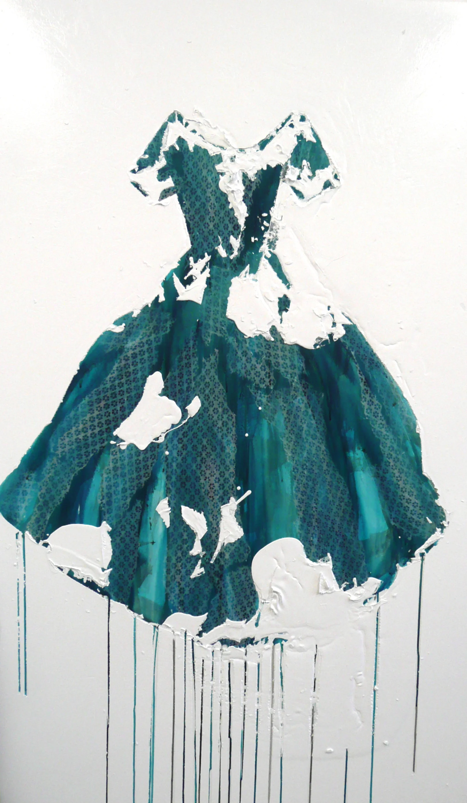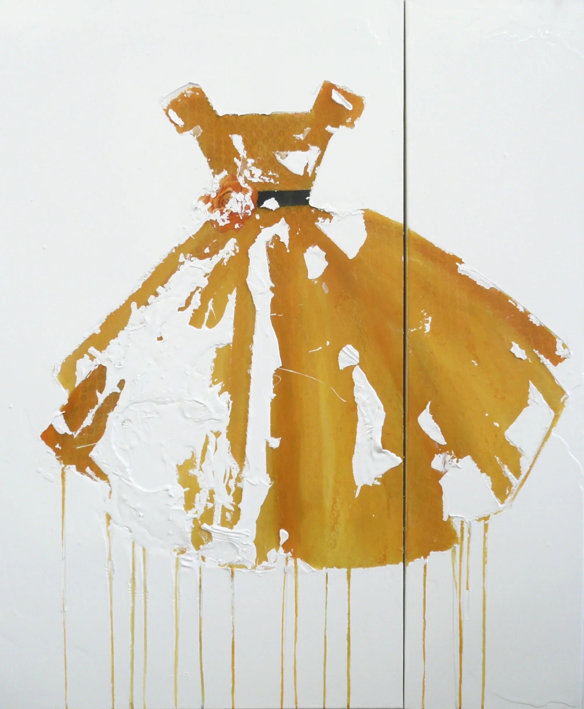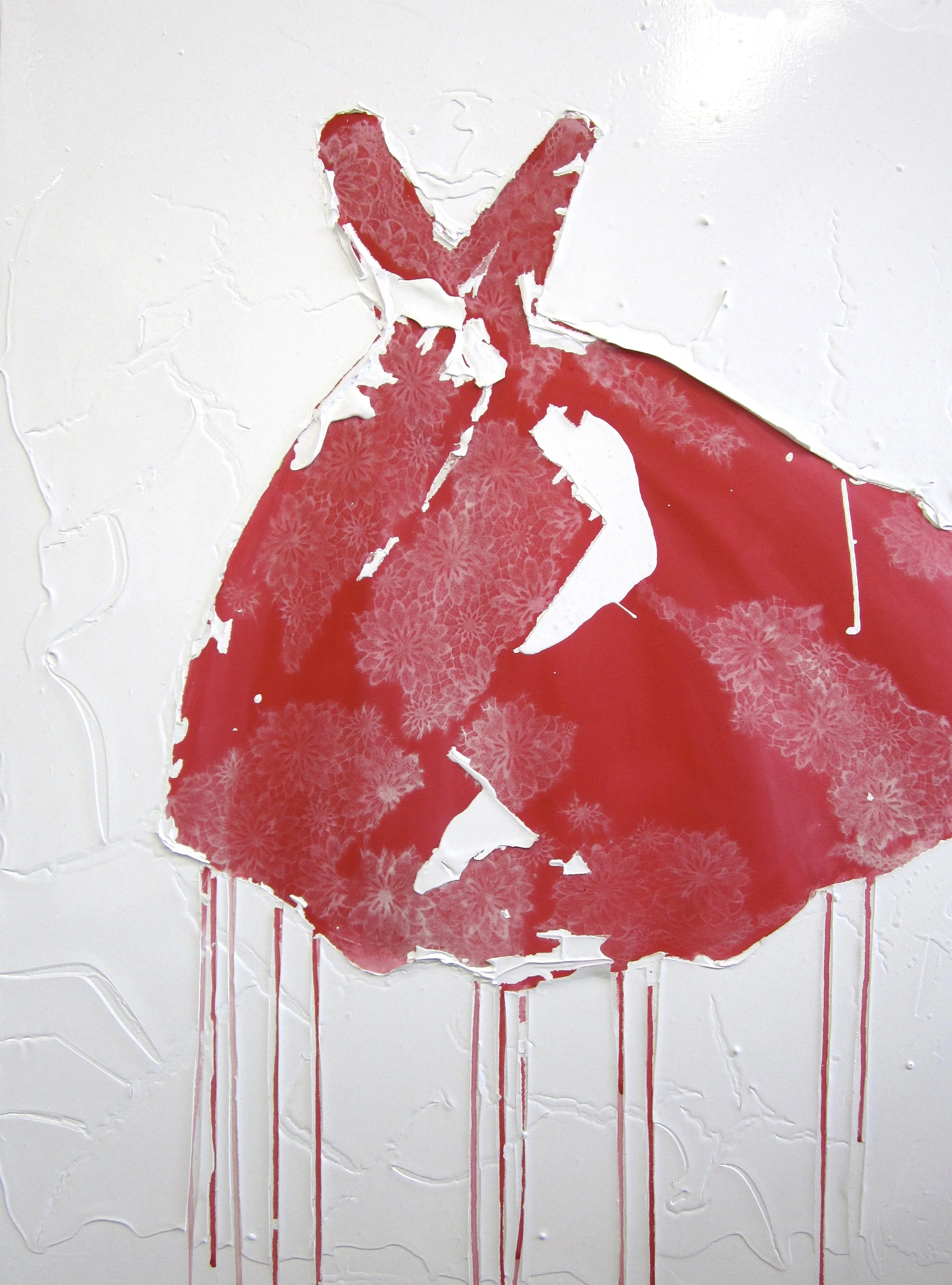 Each dress painting is available in various sizes, including 36x60, 30x40, and 36x36, inviting viewers into enchantment and intrigue. I invite you to explore the beauty of contrast through the lens of contemporary artistry, where every brushstroke tells a story and every tear reveals a truth.